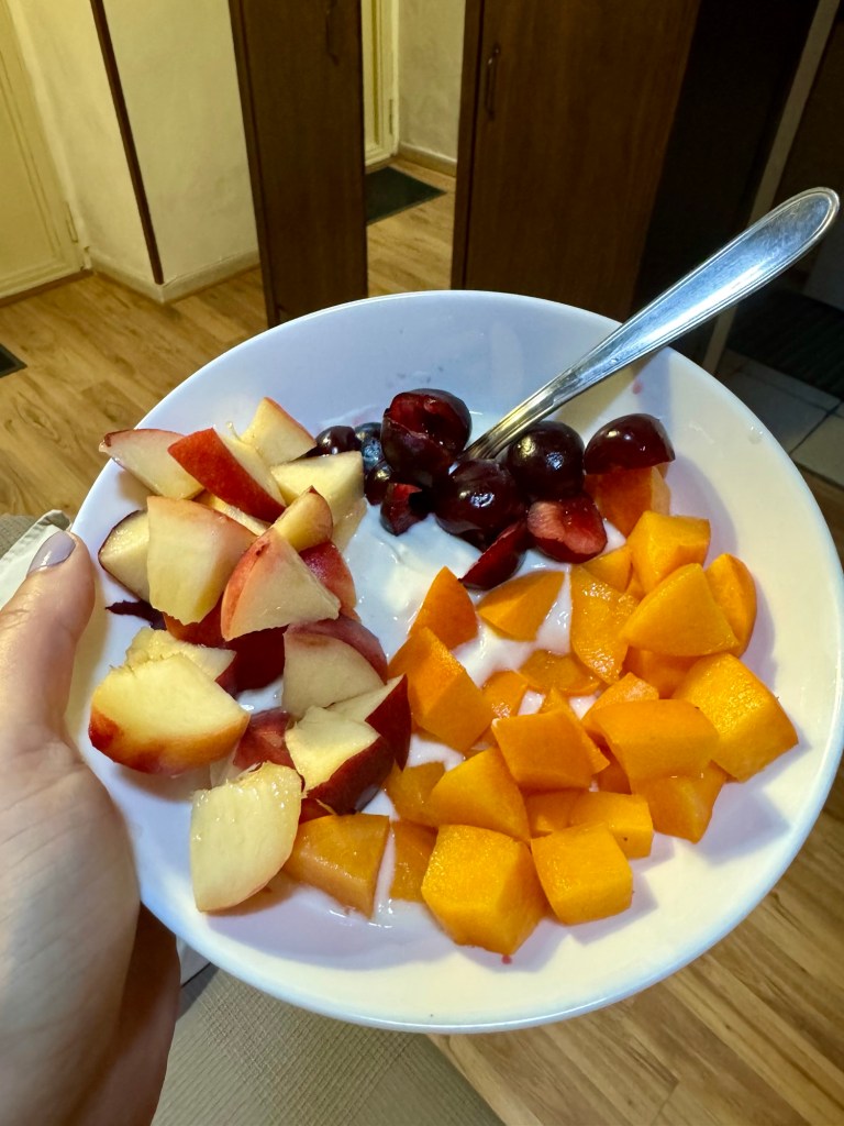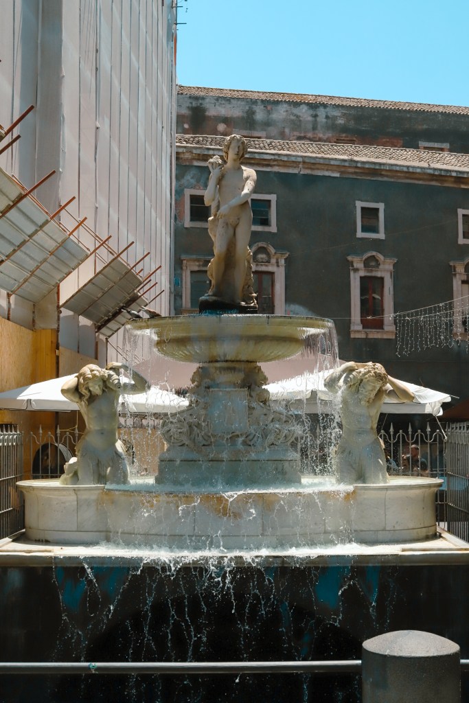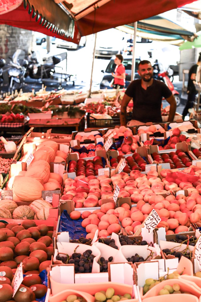 No trip to Catania would be complete without a visit to its famous fish market, La Pescheria. Walking through this lively market was a feast for the senses. The air was filled with the sea’s salty aroma, and the vibrant displays of fresh fish, shellfish, and seafood created a kaleidoscope of colors. Vendors enthusiastically touted their catches of the day, adding to the market’s energetic atmosphere. I couldn’t resist buying fresh fruits, including peaches, apricots, nectarines, cherries, and grapes. Their juicy sweetness provides a perfect counterpoint to the savory seafood all around.