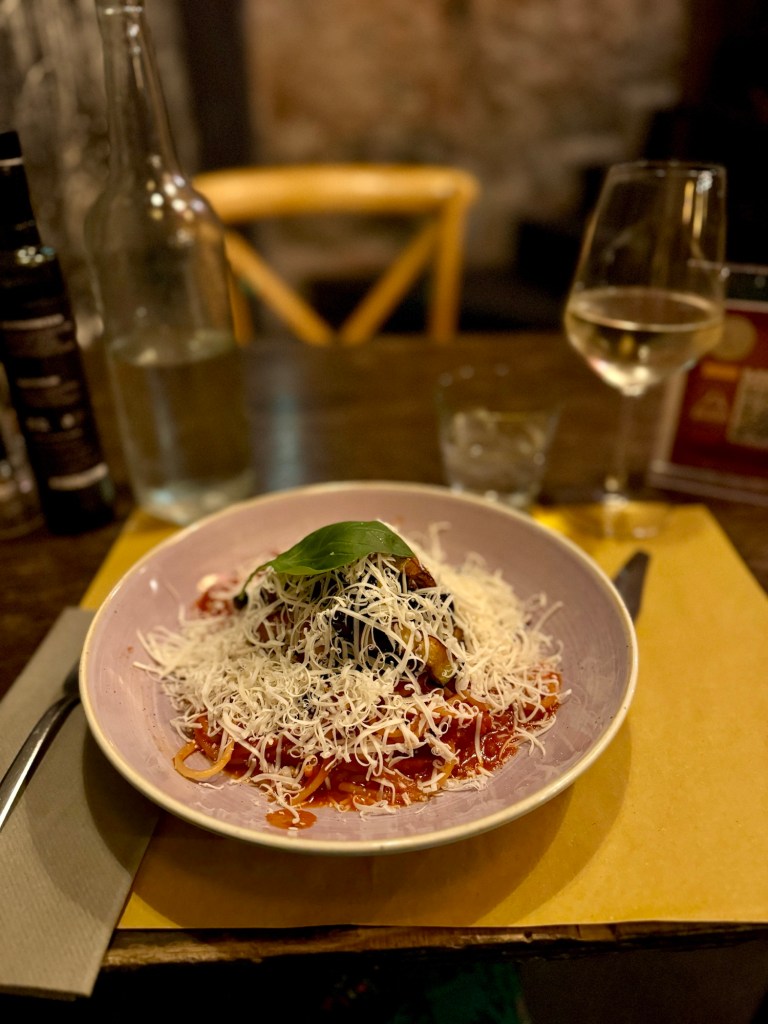 Another highlight was Arancini alla Norma, golden, crispy rice balls stuffed with the same delightful ingredients. These savory treats were the perfect snack as I wandered the bustling streets of Catania. Of course, I couldn’t leave without trying Spaghetti alla Norma, a dish that exemplifies Sicilian cuisine’s simplicity and bold flavors.